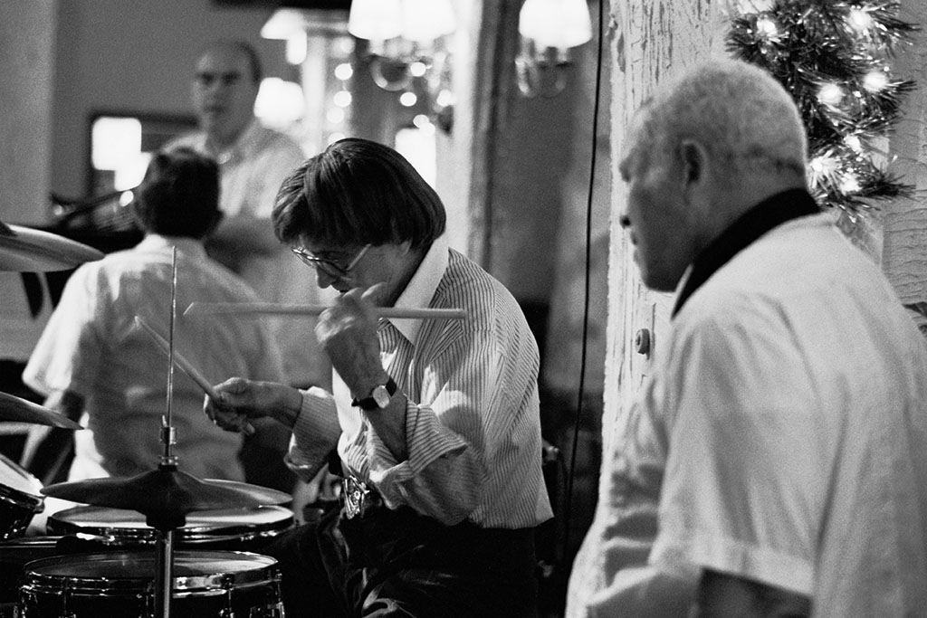 Barrett Deems Watched by Franz Jackson Published February 25, 2018 at 1024 × 683 Franz Jackson watching Barrett Deems drum solo at the Rib Exchange